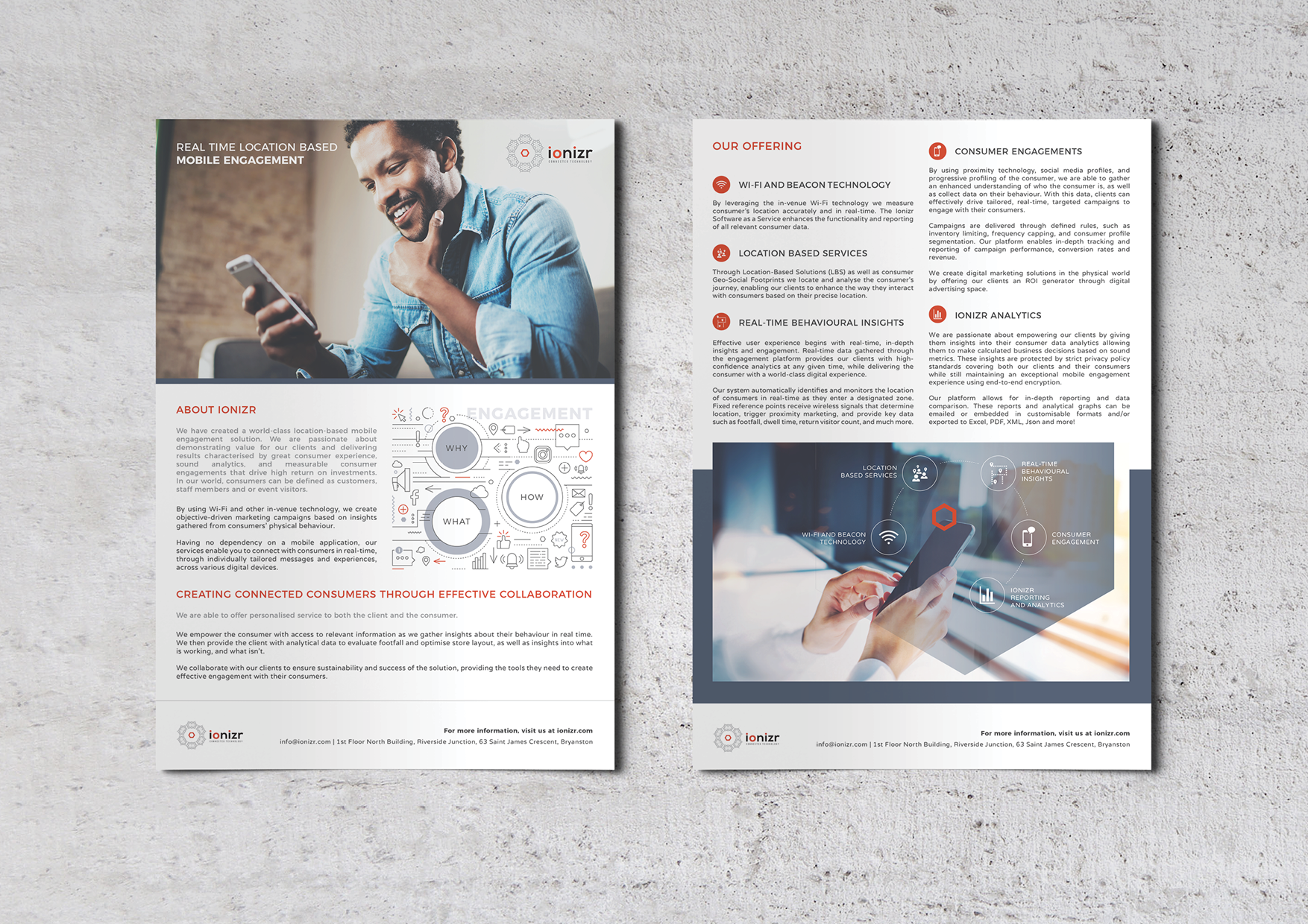 A location-based mobile engagement business, Ionizr, required a visual language and graphic style that could help bring their existing brand to life.