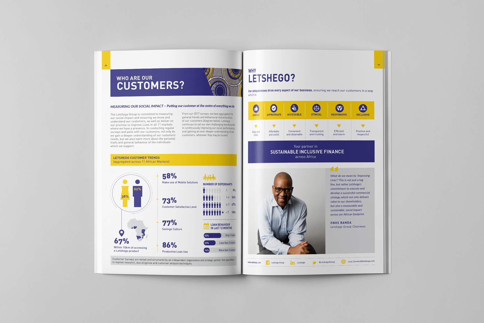 This project required design and layout of an investor’s fact sheet booklet for Letshego, an African micro-finance business.